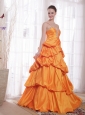 Home >  Prom Dresses >  Modest Prom Dresses > Orange A-Line / Princess Straps Floor-length Taffeta Beading Prom Dress