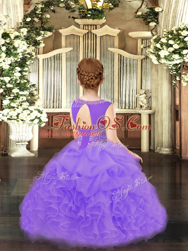 Orange Ball Gowns Beading and Ruffles and Pick Ups Pageant Gowns For Girls Lace Up Organza Sleeveless Floor Length
