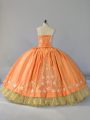 Orange Ball Gowns Embroidery and Ruffled Layers Quince Ball Gowns Lace Up Satin and Organza Sleeveless Floor Length