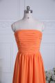 Orange Bridesmaid Gown Wedding Party with Ruching Strapless Sleeveless Zipper