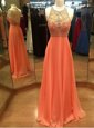 Orange Chiffon Backless Scoop Sleeveless Prom Party Dress Brush Train Beading