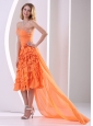 Home >  Prom Dresses >  New Arrivals > Orange Chiffon Sweetheart Beaded and Ruffled Layers Detachable High-low Prom / Homecoming Dress