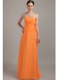 Orange Column Strapless Floor-length Chiffon Ruch Bridesmaid Dress