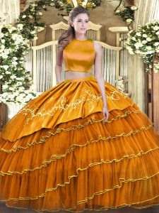 Orange Criss Cross Vestidos de Quinceanera Ruffled Layers Sleeveless Floor Length