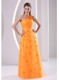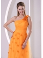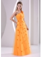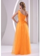 Orange Hand Made Flowers One Shoulder 2013 Prom / Evening Dress Tulle
