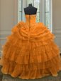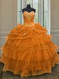 Home >  Quinceanera Dresses >  Unique Quinceanera Dresses > Orange Lace Up Quinceanera Gown Beading and Ruffled Layers and Pick Ups Sleeveless Floor Length