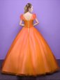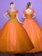 Orange Lace Up Scoop Appliques Sweet 16 Dress Tulle Short Sleeves