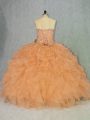 Orange Lace Up Sweetheart Beading and Ruffles 15 Quinceanera Dress Organza Sleeveless
