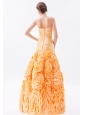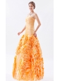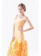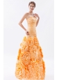 Orange Mermaid Sweetheart Ruch Prom Dress Floor-length Fabric With Rolling Flower