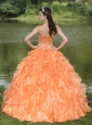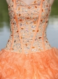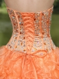 Orange Quinceanera Dress Clearance With Sweetheart Beaded Ruffles Layered Decorate Organza