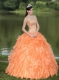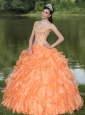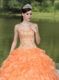 Home >  Quinceanera Dresses >  Fashionable Quinceanera Dresses > Orange Quinceanera Dress Clearance With Sweetheart Beaded Ruffles Layered Decorate Organza