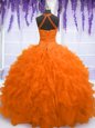 Home >  Quinceanera Dresses >  Sweet 16 Dresses > Orange Red Ball Gowns Beading and Ruffles Quinceanera Gowns Lace Up Organza Sleeveless Floor Length