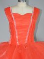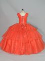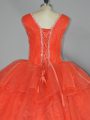 Orange Red Ball Gowns Organza Straps Sleeveless Beading and Ruffled Layers Floor Length Lace Up Quinceanera Gown