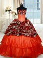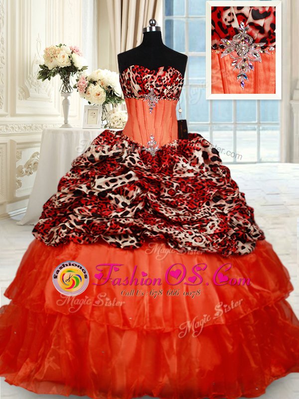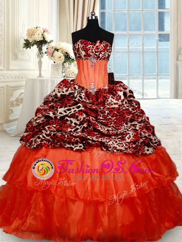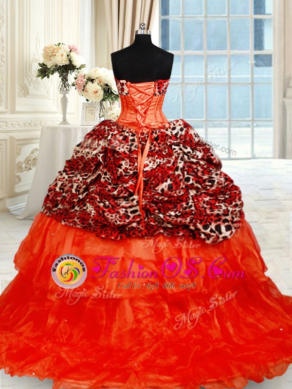 Orange Red Ball Gowns Organza Sweetheart Sleeveless Beading Lace Up Quinceanera Gown Brush Train