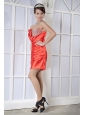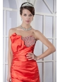 Orange Red Column / Sheath Sweetheart Mini-length Elastic Woven Satin Beading Prom Dress