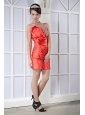 Home >  Prom Dresses >  Short Prom Dresses > Orange Red Column / Sheath Sweetheart Mini-length Elastic Woven Satin Beading Prom Dress