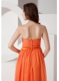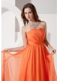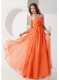 Orange Red Empire Evening Dress Strapless Chiffon Ruch Floor-length