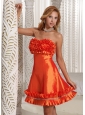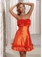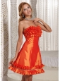 Orange Red Hand Made Flowers A-line Custom Made Prom Dress With Taffeta