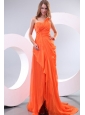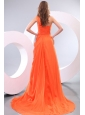Home >  Prom Dresses >  Beautiful Prom Dresses > Orange Red One Shoulder Beading and Ruche Prom Dress with Court Train