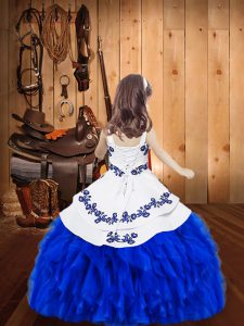 Home >  Special Occasion Dresses >  Pretty Little Girl Pageant Dresses > Orange Red Organza Lace Up Girls Pageant Dresses Sleeveless Floor Length Embroidery and Ruffles
