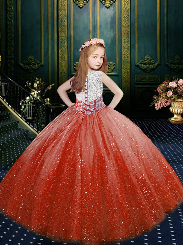 Home >  Special Occasion Dresses >  Mini Quinceanera Dresses > Orange Red Scoop Neckline Appliques Toddler Flower Girl Dress Sleeveless Clasp Handle