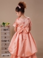 Orange Red Short Sleeves High Neck A-line Flower Girl Dress With Back Bowknot Hottest