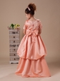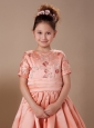 This A-line flower girl Dress is sure for you who are searching for some princess style! The embroidery decorated bodice with a scoop neckline and short sleeves makes the dress more pertty. While the skirt features two layers and lpick-ups on the bottom. You will be a little star on the party.