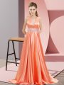 Orange Red Sleeveless Elastic Woven Satin Brush Train Backless Prom Dress for Prom and Party