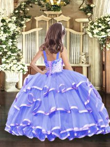 Orange Red Sleeveless Floor Length Beading and Ruffled Layers Lace Up Pageant Dress for Girls