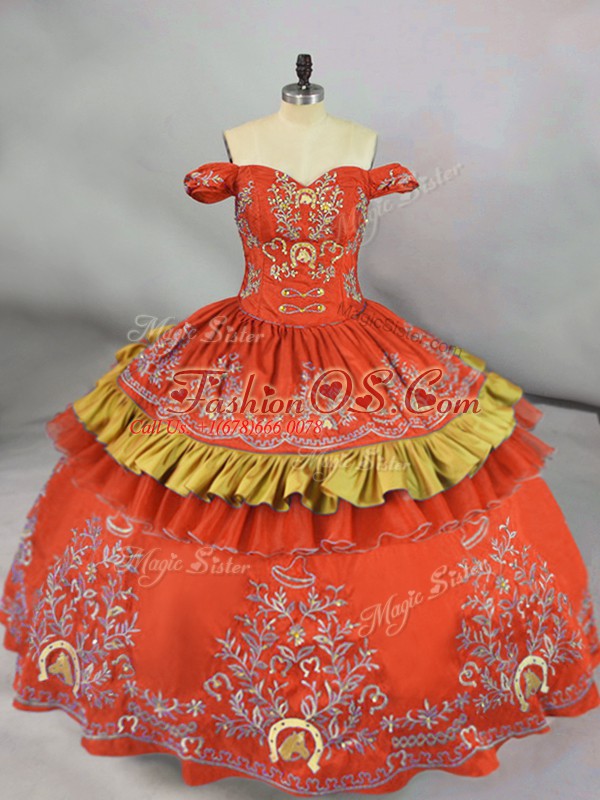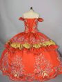 Orange Red Sleeveless Satin Lace Up Quinceanera Dresses for Sweet 16 and Quinceanera