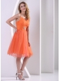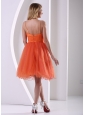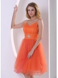 Orange Red Spagetti Straps Sweet Cocktail Dress With Beding and Ruch