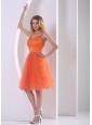 Home >  Prom Dresses >  Modest Prom Dresses > Orange Red Spagetti Straps Sweet Cocktail Dress With Beding and Ruch