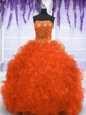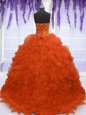 Orange Red Strapless Lace Up Beading and Appliques and Ruffles 15 Quinceanera Dress Brush Train Sleeveless
