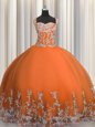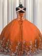 Orange Red Vestidos de Quinceanera Military Ball and Sweet 16 and Quinceanera and For with Beading and Appliques Straps Sleeveless Lace Up