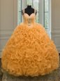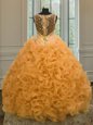 Orange Sleeveless Beading and Ruffles Floor Length Quinceanera Gown