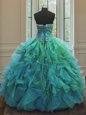 Orange Sleeveless Beading and Ruffles Floor Length Sweet 16 Quinceanera Dress