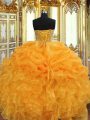 Orange Sleeveless Beading and Ruffles Floor Length Vestidos de Quinceanera