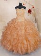 Orange Sleeveless Organza Lace Up Sweet 16 Dresses for Military Ball and Sweet 16 and Quinceanera