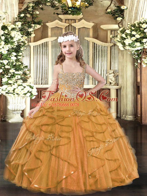Home >  Special Occasion Dresses >  Beautiful Kids Pageant Dresses > Orange Sleeveless Tulle Lace Up Custom Made Pageant Dress for Military Ball and Sweet 16 and Quinceanera and Wedding Party