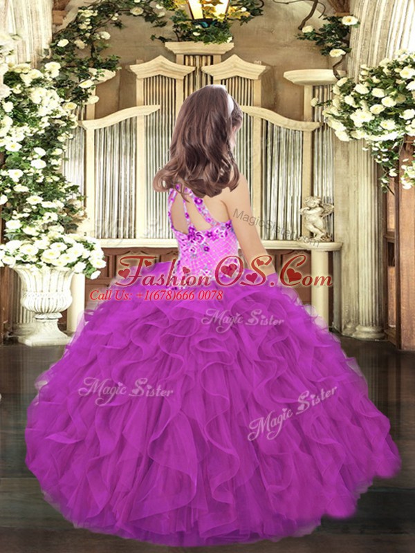 Orange Sleeveless Tulle Lace Up Pageant Gowns For Girls for Party and Wedding Party
