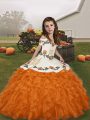 Orange Straps Lace Up Embroidery and Ruffles Little Girls Pageant Dress Sleeveless