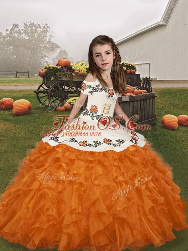 Home >  Special Occasion Dresses >  Pretty Little Girl Pageant Dresses > Orange Straps Lace Up Embroidery and Ruffles Little Girls Pageant Dress Sleeveless