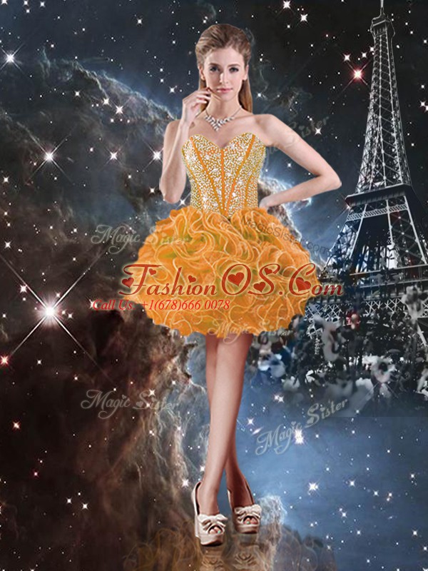 Orange Sweetheart Lace Up Beading and Ruffles Vestidos de Quinceanera Sleeveless