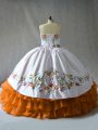 Orange Sweetheart Lace Up Embroidery and Ruffled Layers Quinceanera Gowns Sleeveless