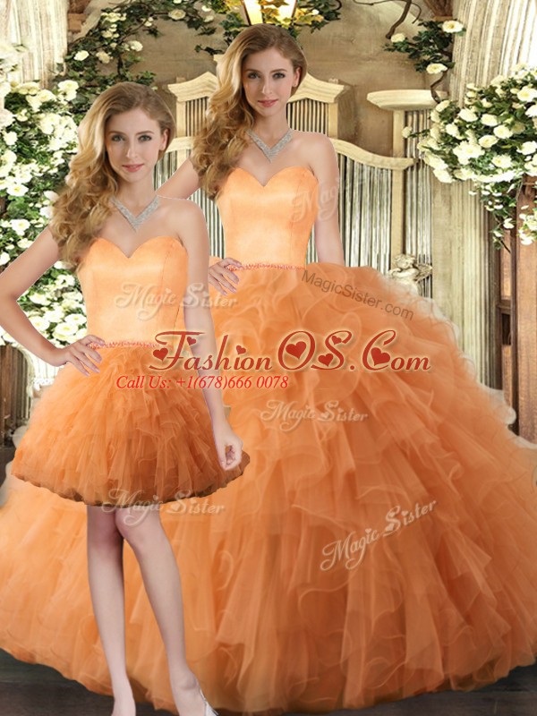 Home >  Quinceanera Dresses >  Detachable Quinceanera Skirts > Orange Tulle Lace Up 15 Quinceanera Dress Sleeveless Floor Length Ruffles