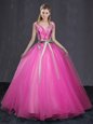 Orange Tulle Lace Up Quinceanera Dress Sleeveless Floor Length Beading and Belt