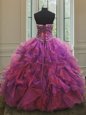 Home >  Quinceanera Dresses >  Perfect Quinceanera Dresses > Organza and Sequined Sleeveless Floor Length 15 Quinceanera Dress and Beading and Ruffles