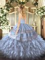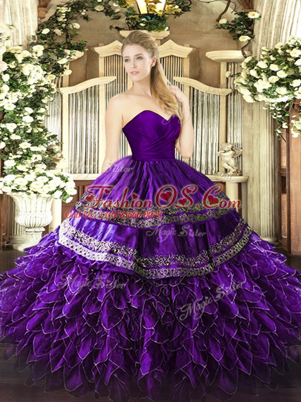 Organza and Taffeta Sleeveless Floor Length 15 Quinceanera Dress and Embroidery and Ruffles