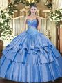 Organza and Taffeta Sweetheart Sleeveless Lace Up Beading and Ruffles Quinceanera Gowns in Baby Blue