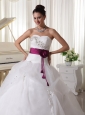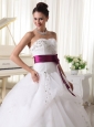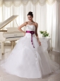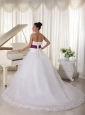 Organza Court Train Beautiful A-line Weding Dress With Hand Made Flowers Belt and Beaded Bust Sweetheart